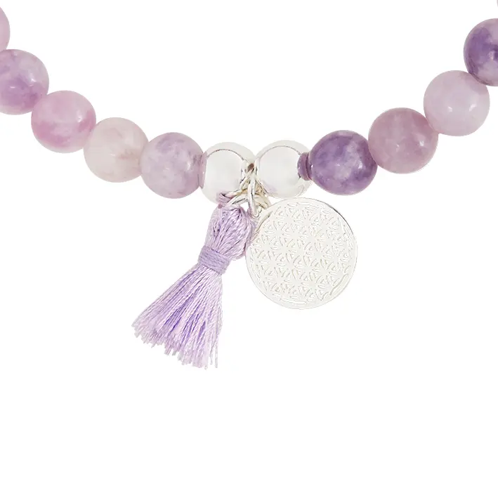 Echtsteinarmband KARMA – Lepidolith, Blume des Lebens, versilbert