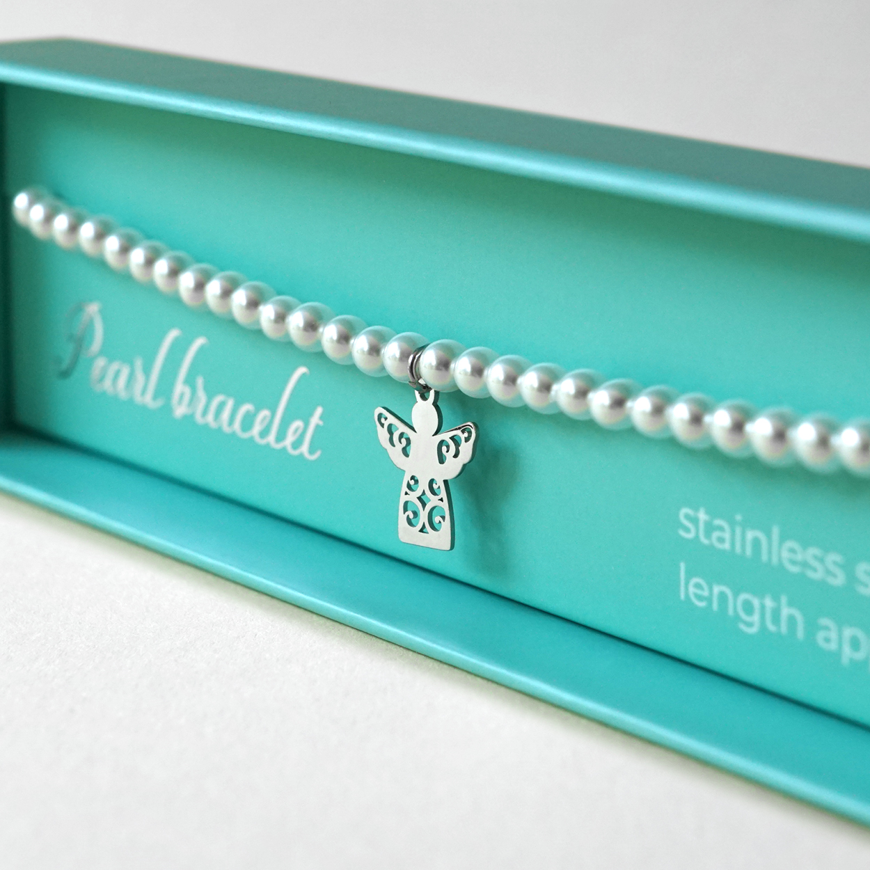 Geschenkbox Perlenarmband – Schutzengel, Edelstahl