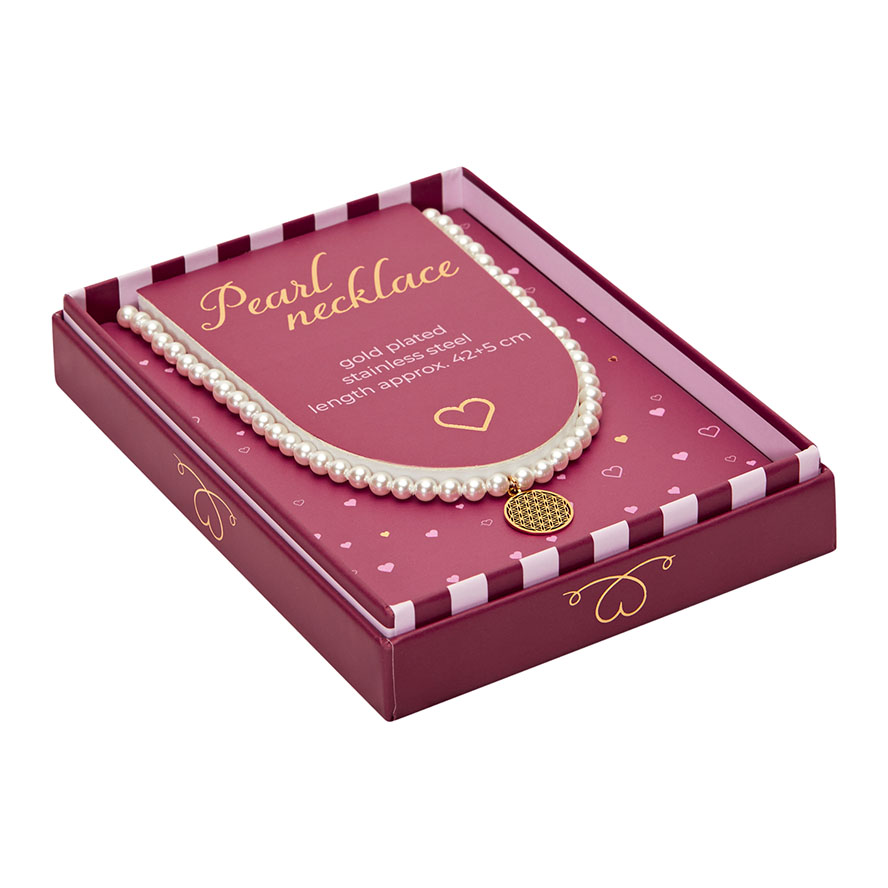 Geschenkbox Perlenhalskette – Blume des Lebens, vergoldet