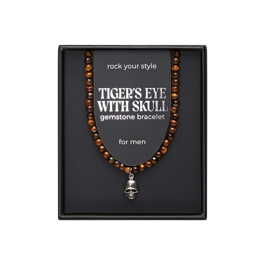 Geschenkbox MEN – Halskette, Tigerauge mit Totenkopf